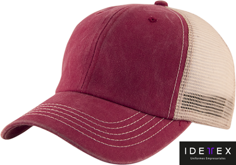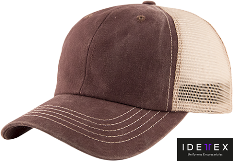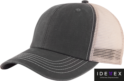 Algodón peinado y deslavado con malla, costura en contraste y frente suave. Broche de velcro.