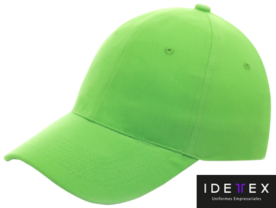 Gorra de gabardina 100% algodón. Botón forrado, costuras en contraste, ajuste para velcro y puntada frontal de seguridad.