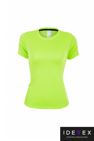 Playera deportiva cuello redondo para dama, con tecnología que permite una mejor transpiración, es una prenda fresca, durable y suave.